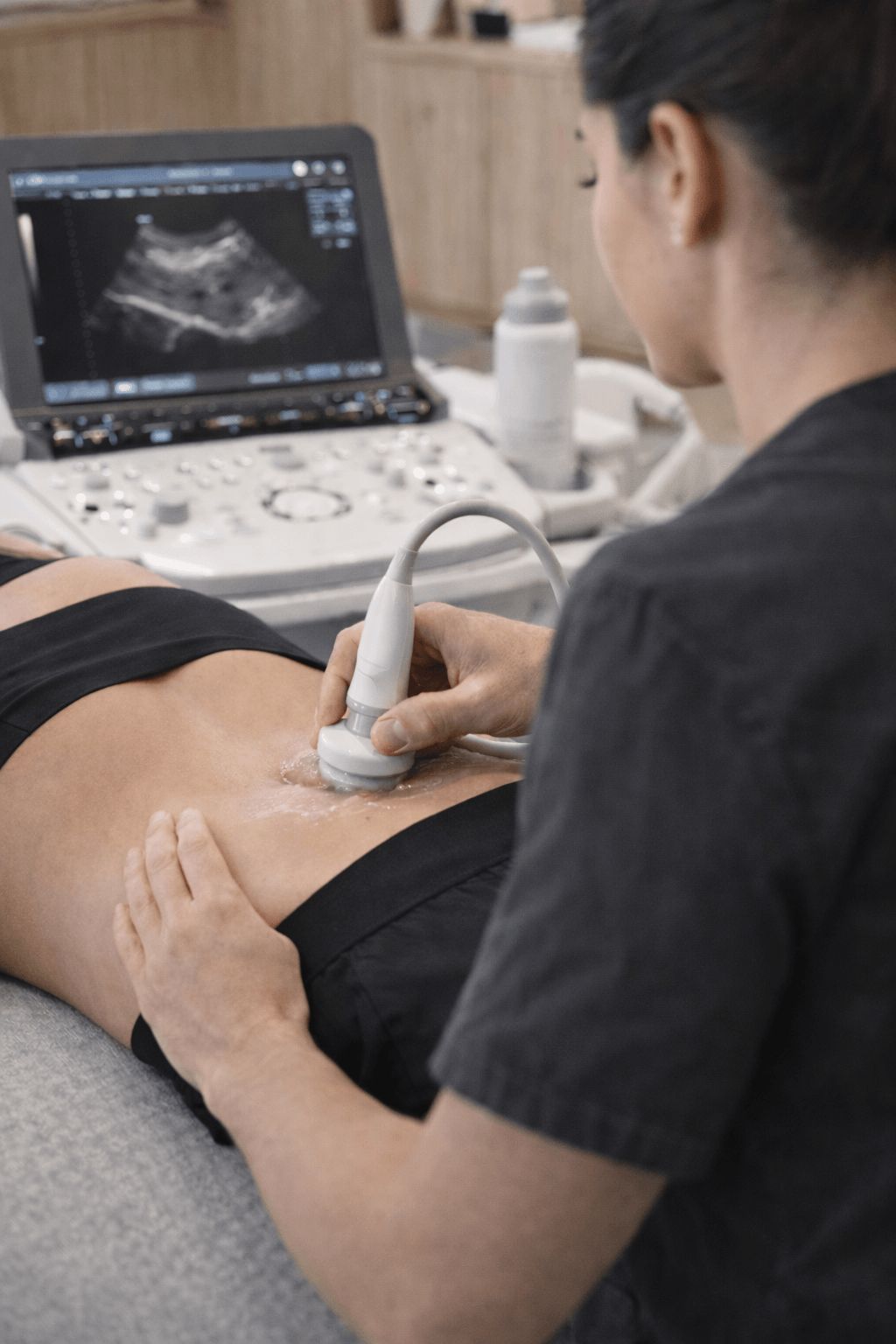 Tratamiento de disfunciones del suelo pélvico mediante técnicas específicas y ecografía.